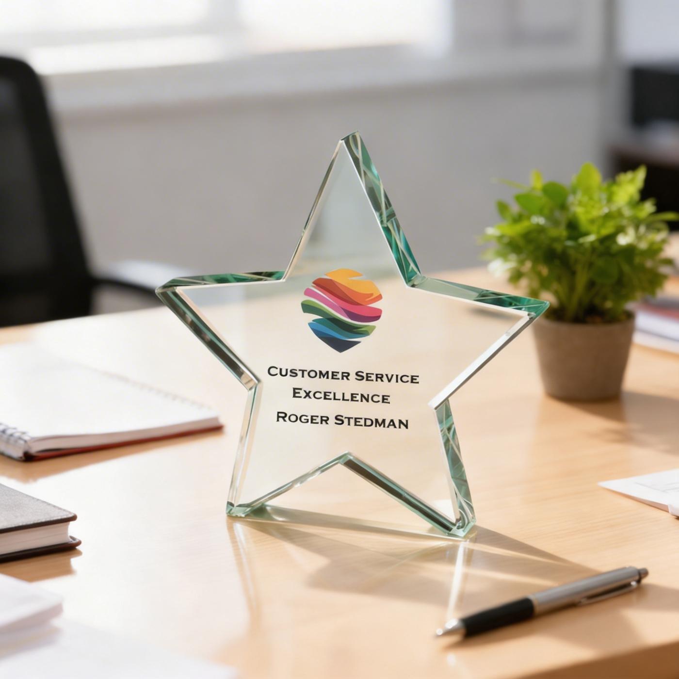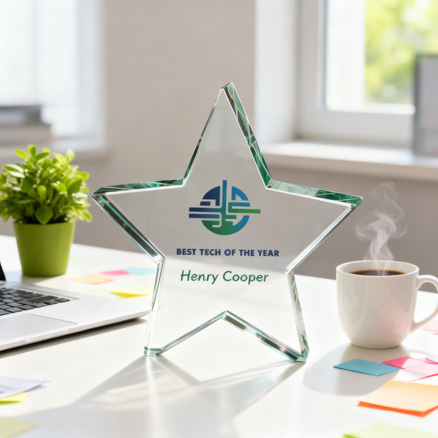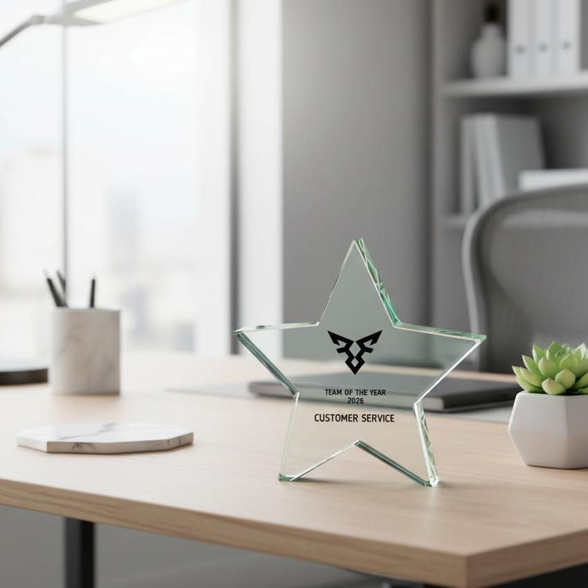 Recognise outstanding achievements with the striking Aurora Jade Star Glass Award, a premium jade glass trophy designed to make a lasting impression. Featuring a beautifully cut 5-point star crafted from thick jade glass, this elegant award reflects light brilliantly and creates a stylish display for celebrating success.