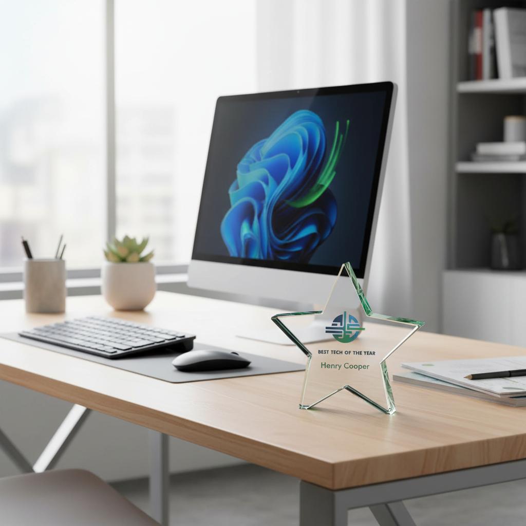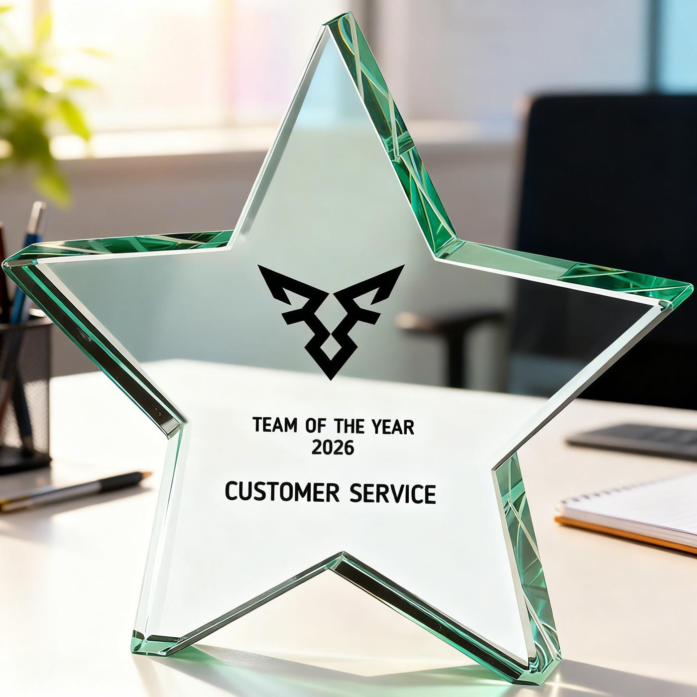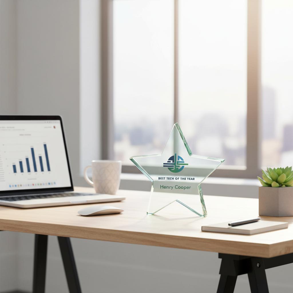 Recognise outstanding achievements with the striking Aurora Jade Star Glass Award, a premium jade glass trophy designed to make a lasting impression. Featuring a beautifully cut 5-point star crafted from thick jade glass, this elegant award reflects light brilliantly and creates a stylish display for celebrating success.