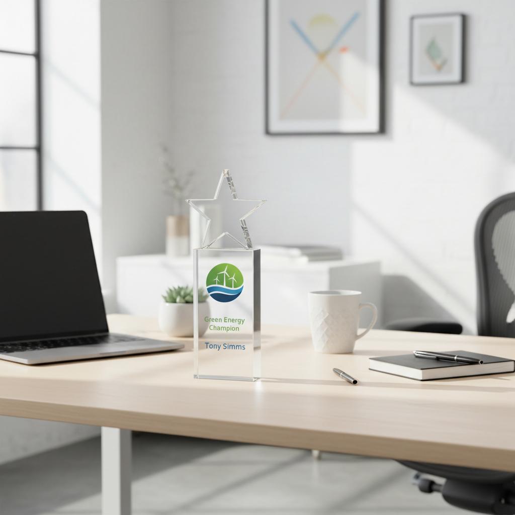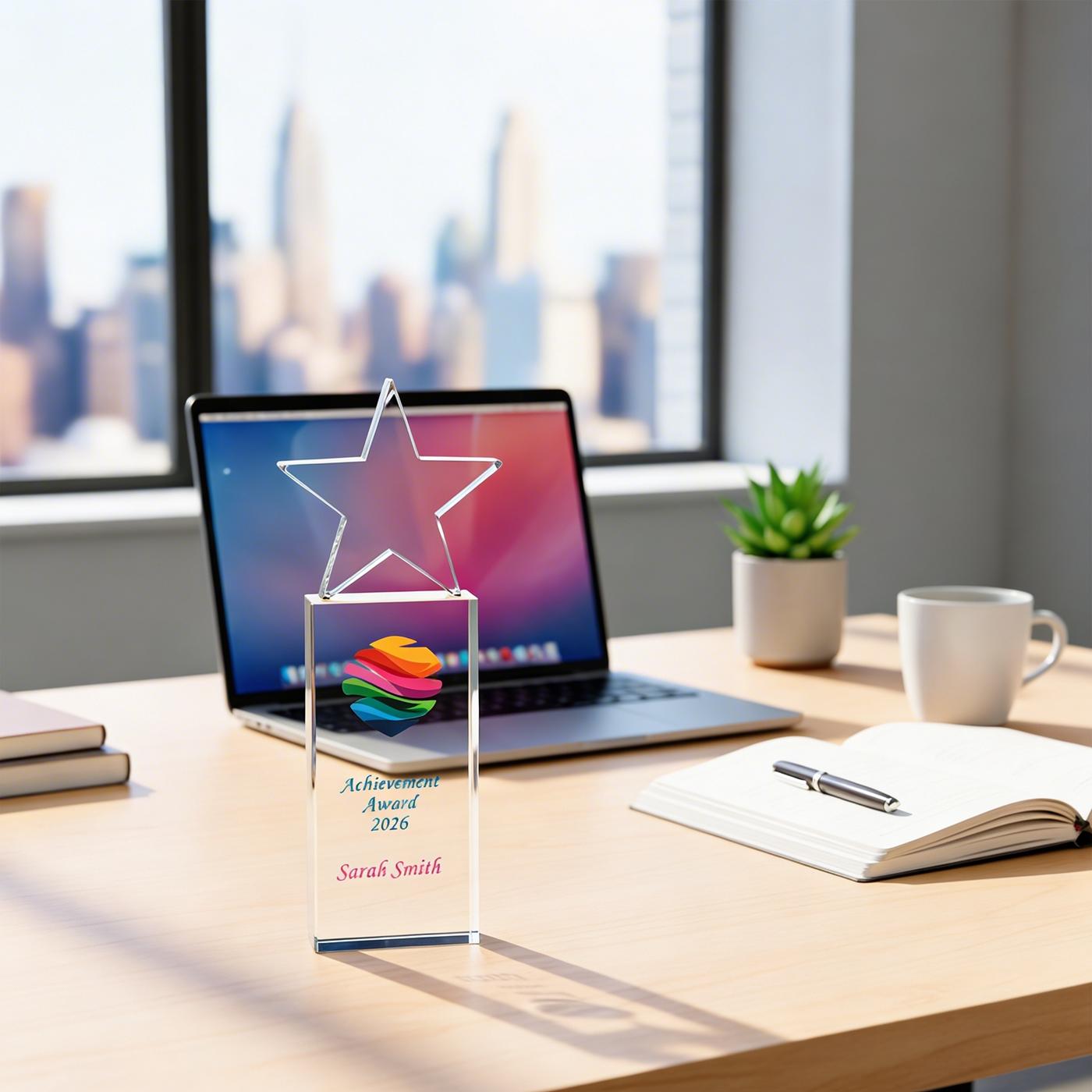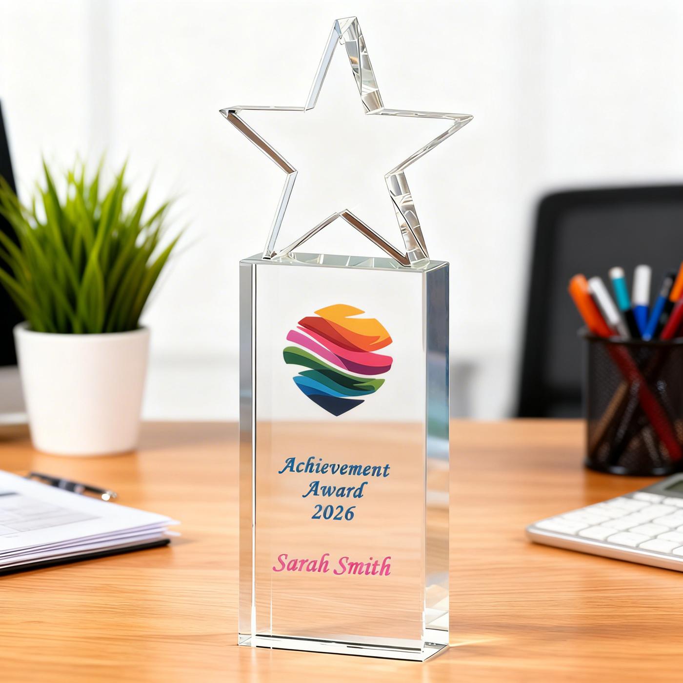 Your personalised design is expertly printed on the smooth flat surface at the back of the glass, creating a mesmerising effect as it reflects through the crystal. Ideal for corporate recognition, sports achievements, or special celebrations, each award comes complete with a luxurious presentation box for a polished and impressive display.