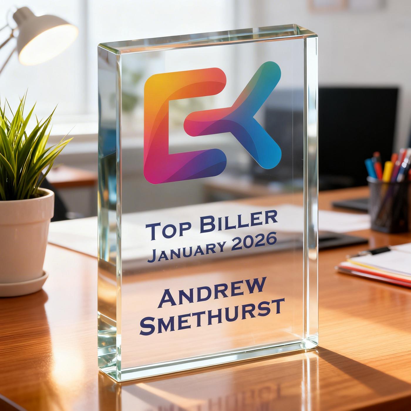This beautiful Clear Glass Block Trophy Award is the perfect way to show appreciation to your employees. Featuring state of the art UV printing, add your company logo, design and personalised text to create your own unique award. Our Glass Block award is a great way to recognize and motivate your team members. Show them their worth and inspire greatness!