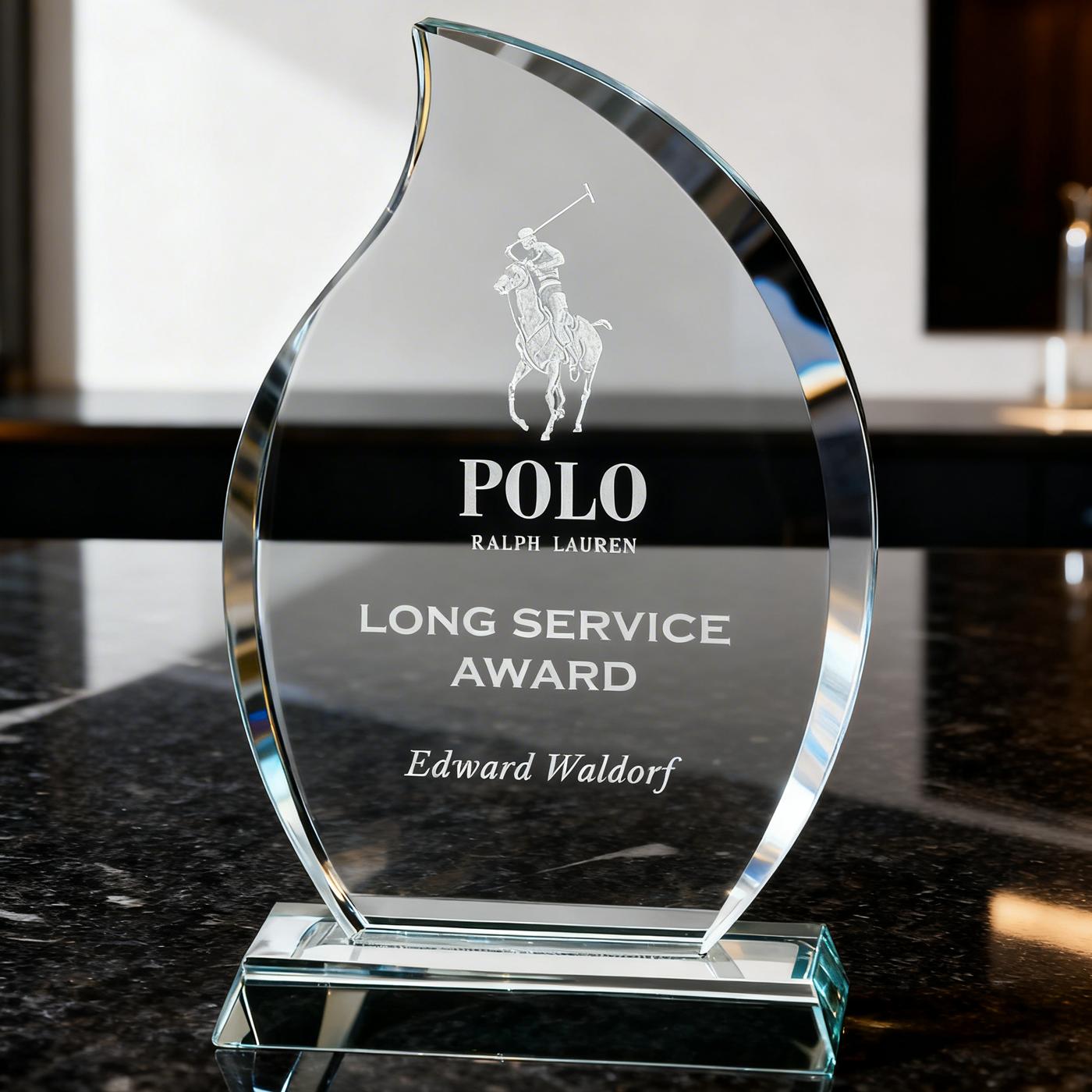 Ignite your celebrations with the Synergy Jade Glass Award, available in two sizes! This flame-shaped trophy exudes brilliance and elegance, featuring space to add your custom logo and a personalised message. The engraving will appear in a stunning frosted white, beautifully contrasting with the jade glass. Ideal for honouring outstanding achievements, the Synergy Jade Glass Award combines style and personalisation to create a truly memorable tribute.